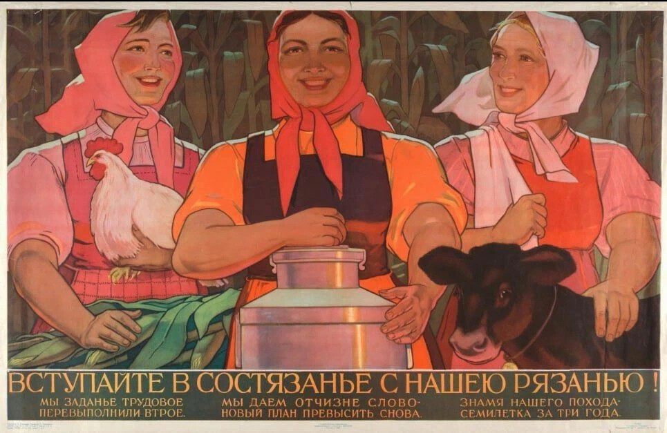 Попалось в Интернете прекрасное – плакат с тремя великолепными крестьянками из Рязанской области из того славного времени, когда Рязань гремела изо всех утюгов и репродукторов.